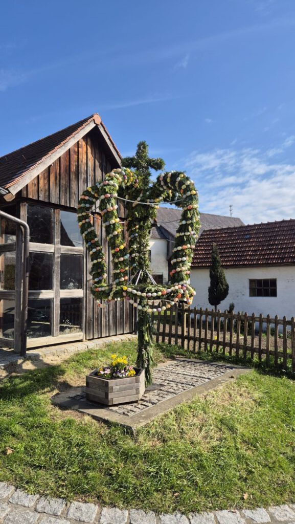 Die Osterkrone in der Ortsmitte von Remshart erstrahlt wieder in voller Pracht. Mit viel Liebe zum Detail und großem Engagement haben die Damen und Herren aus Remshart erneut eine wunderschöne Dekoration geschaffen.